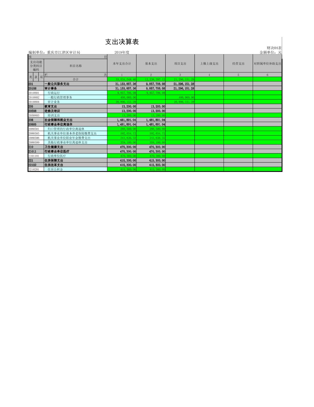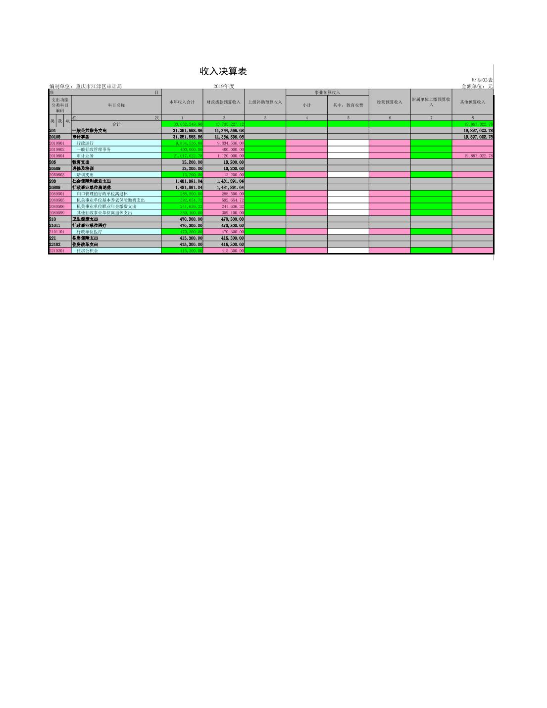 重慶市江津區審計局2019年度決算公開