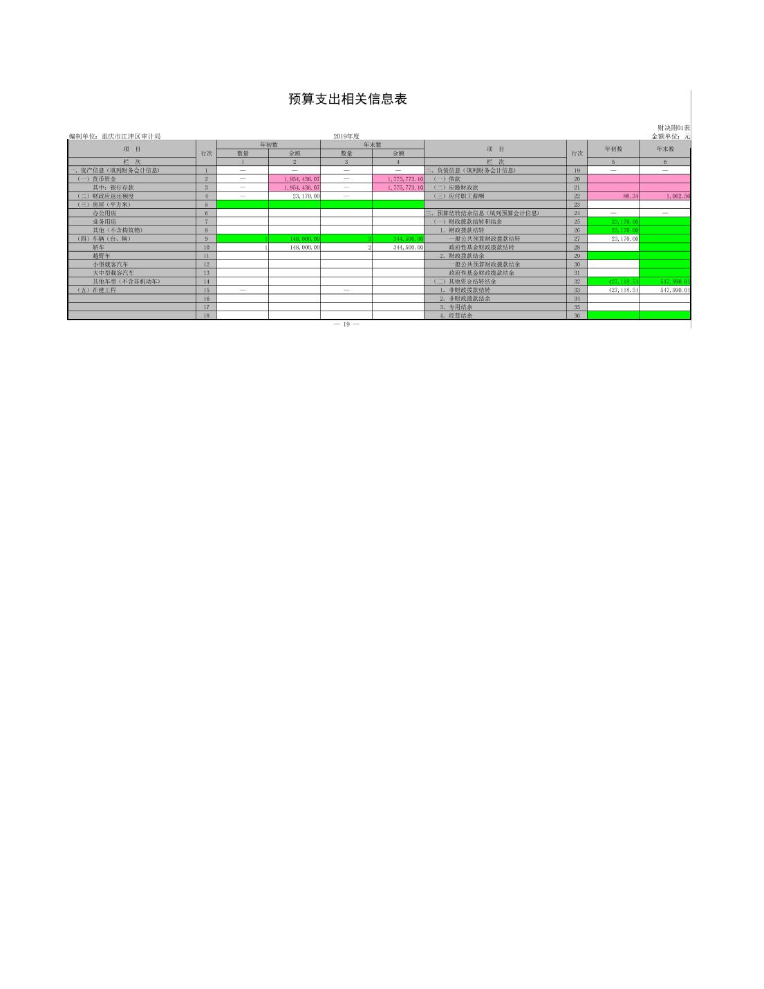 重慶市江津區審計局2019年度決算公開.pdf
