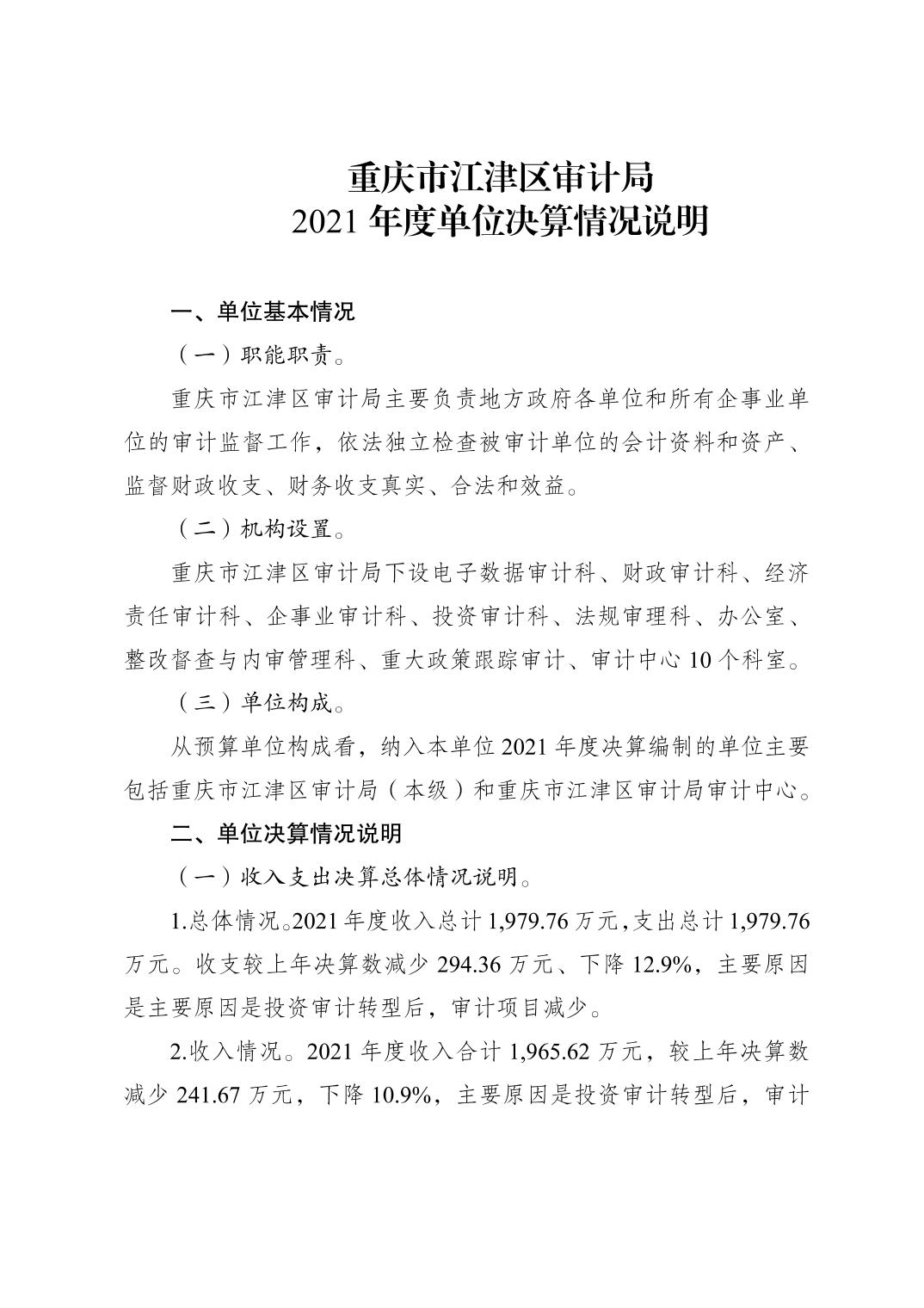 重慶市江津區(qū)審計局2021年度單位決算公開