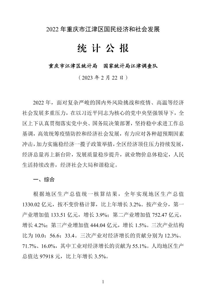 2022年重慶市江津區國民經濟和社會發展公報.pdf