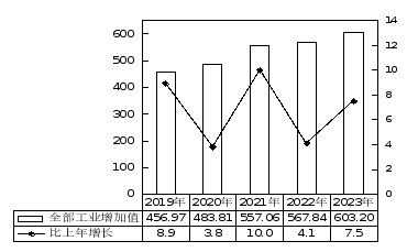全年工業增加值603.20億元,比上年增長7.5%,占全區地區生產總值的43.0%。規模以上工業增加值比上年增長8.5%。