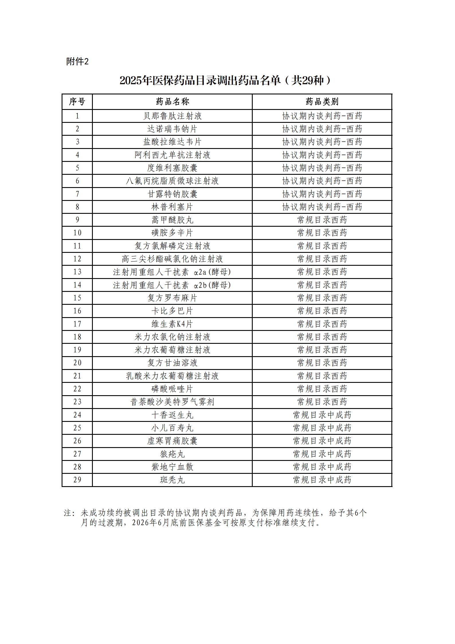 2.2025年醫保藥品目錄調出藥品名單