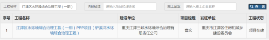 在“工程名稱”處查詢:江津區水環境綜合治理工程(一期)PPP項目(驢溪河水環境綜合治理工程)