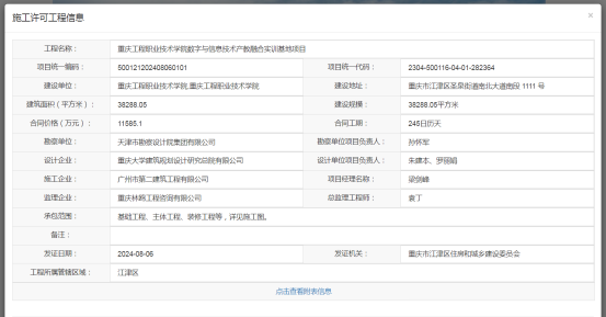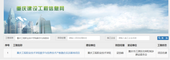 在“工程名稱”處查詢:?重慶工程職業技術學院數字與信息技術產教融合實訓基地項目