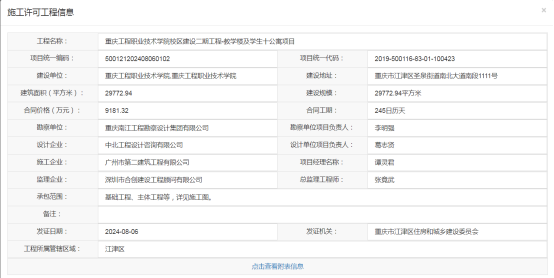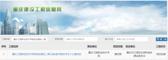 在“工程名稱”處查詢:?重慶工程職業技術學院校區建設二期工程-教學樓及學生十公寓項目