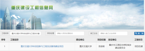 在“工程名稱”處查詢:重慶交通大學科技創新與工程實訓基地建設項目