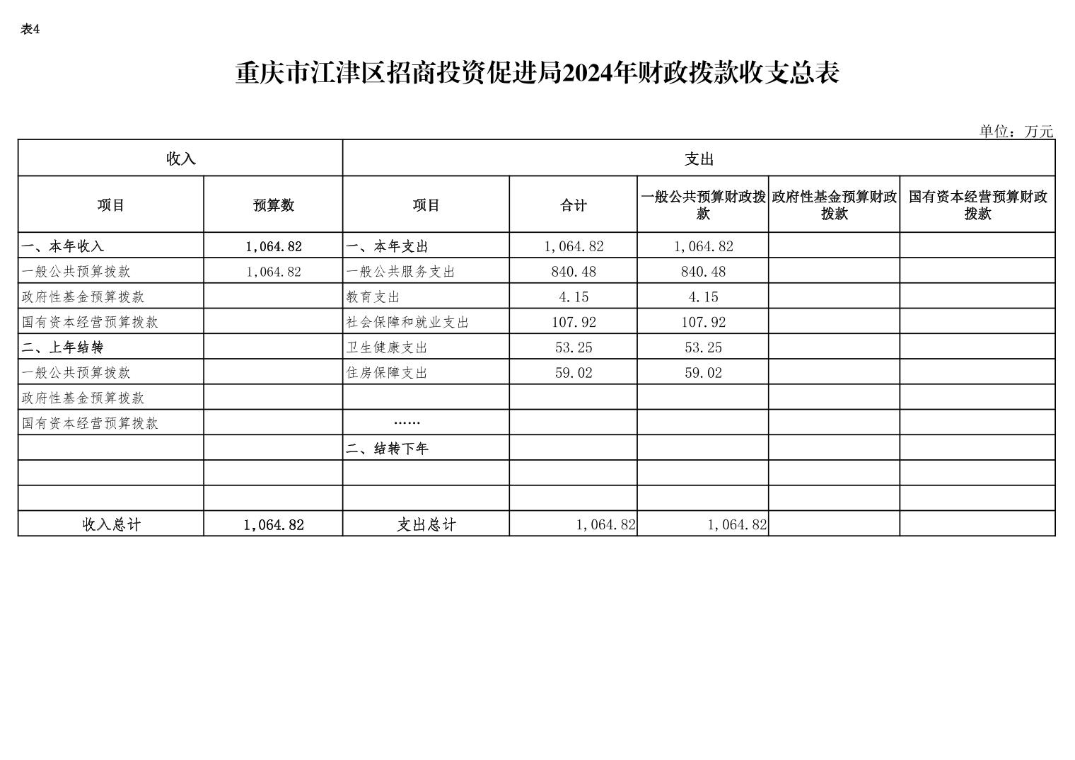 2024年年初預算收入總計1064.82萬元,支出總計1064.82萬元。收支較上年預算數減少65.72萬元,減少5.81%,主要原因是壓縮項目經費,項目經費有所減少。