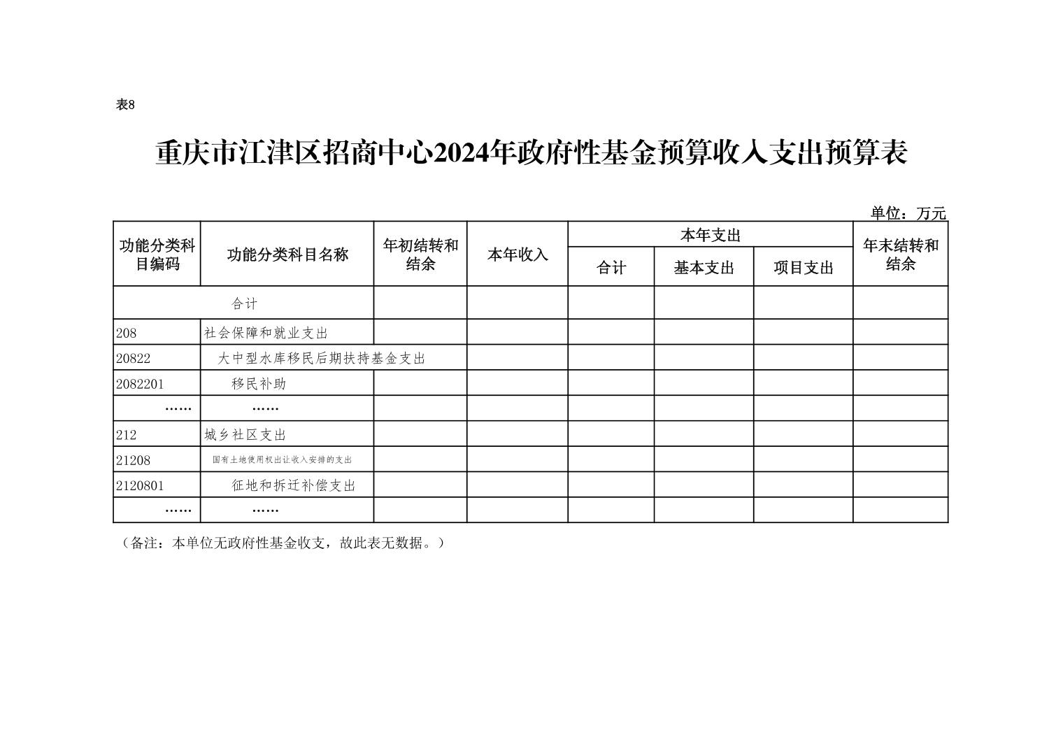 重慶市江津區招商中心2024年無使用政府性基金預算撥款安排的支出。