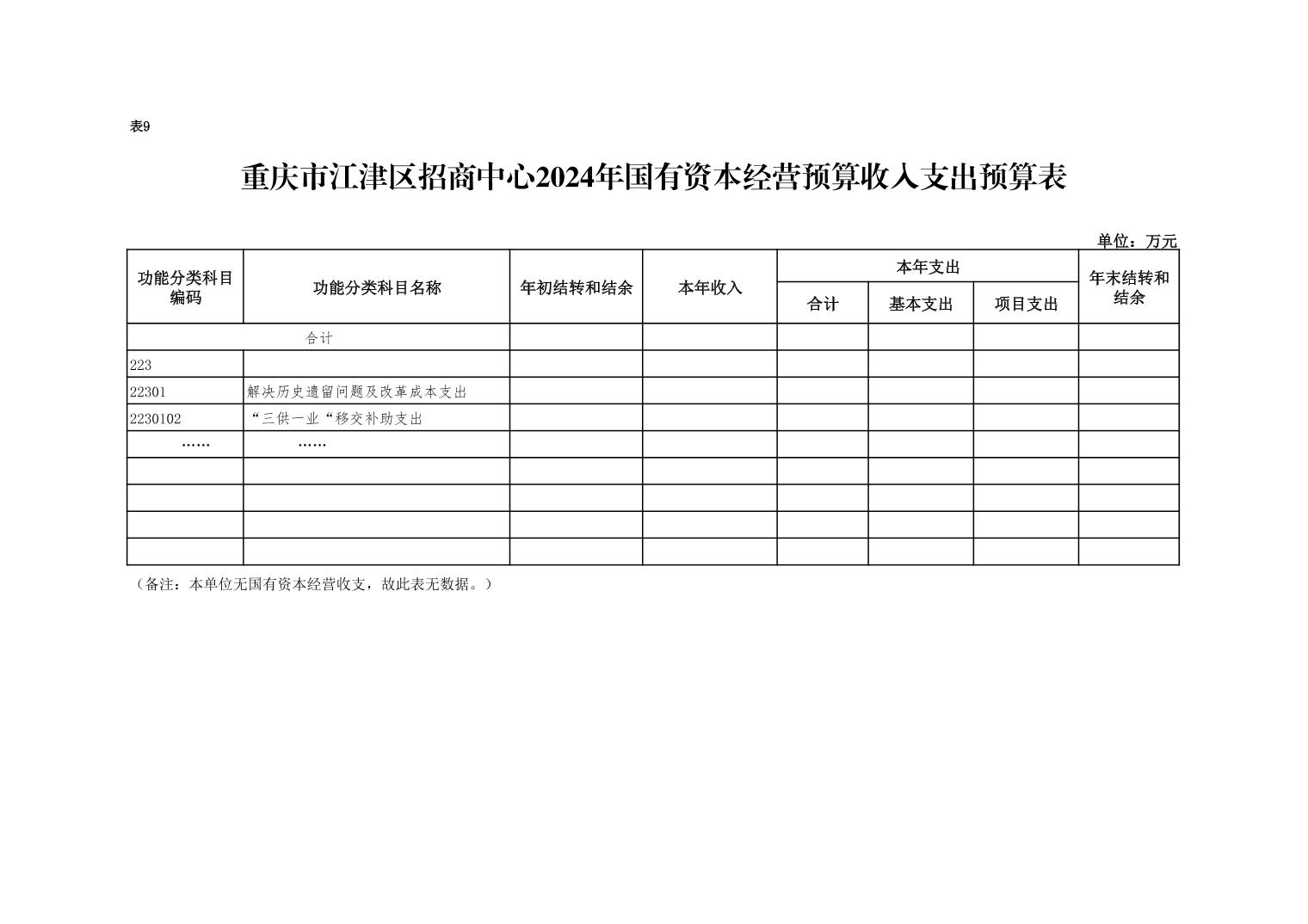 重慶市江津區招商中心2024年無使用國有資本經營預算撥款安排的支出。