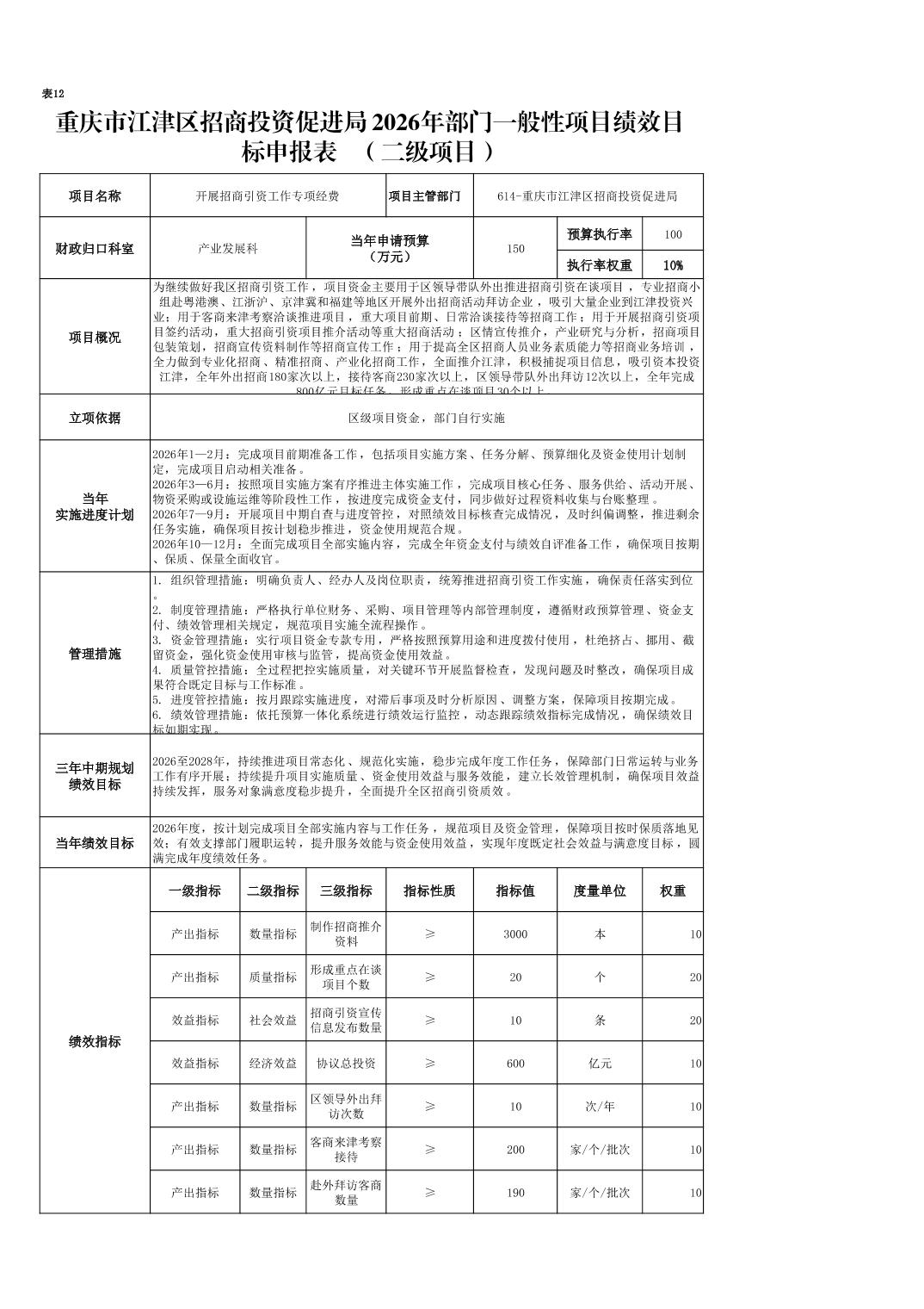 (三)績效目標設置情況。2026年項目支出均實行了績效目標管理,涉及一般公共預算當年財政撥款150萬元。