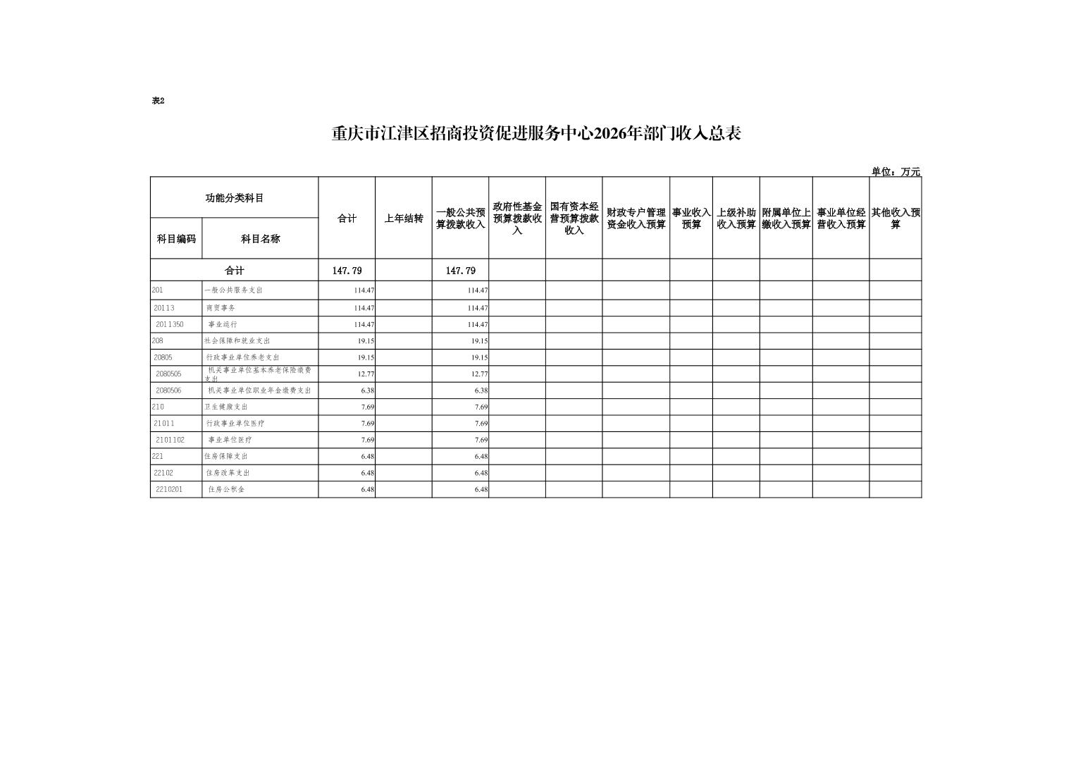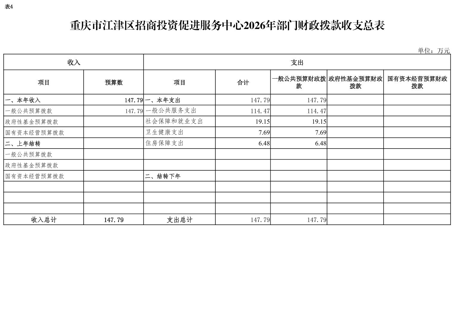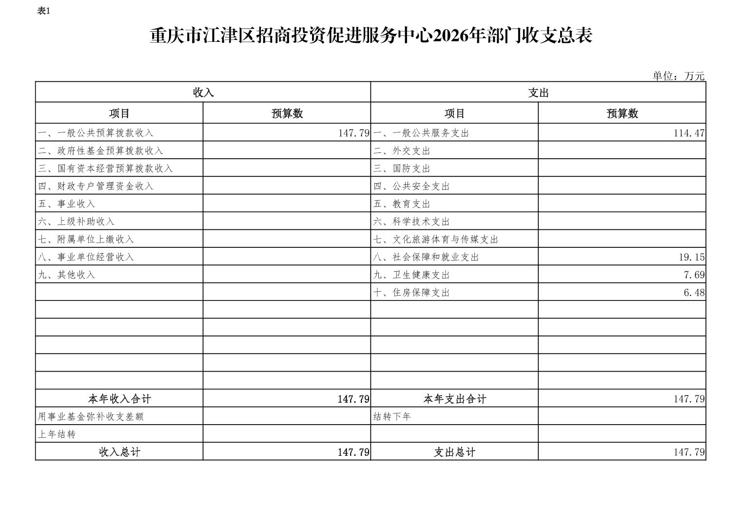 2026年年初預算收入總計147.79萬元,支出總計147.79萬元。