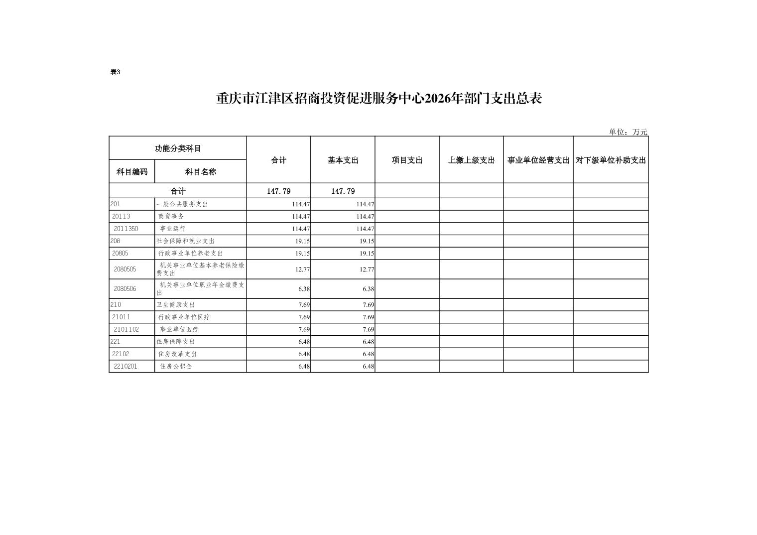 2026年年初預算數147.79元,其中:一般公共服務支出114.47萬元,社會保障和就業支出19.15萬元,衛生健康支出7.69萬元,住房保障支出6.48萬元。支出較去年增加147.79萬元,主要是該單位為2025年新增正科級事業單位,年初無預算。