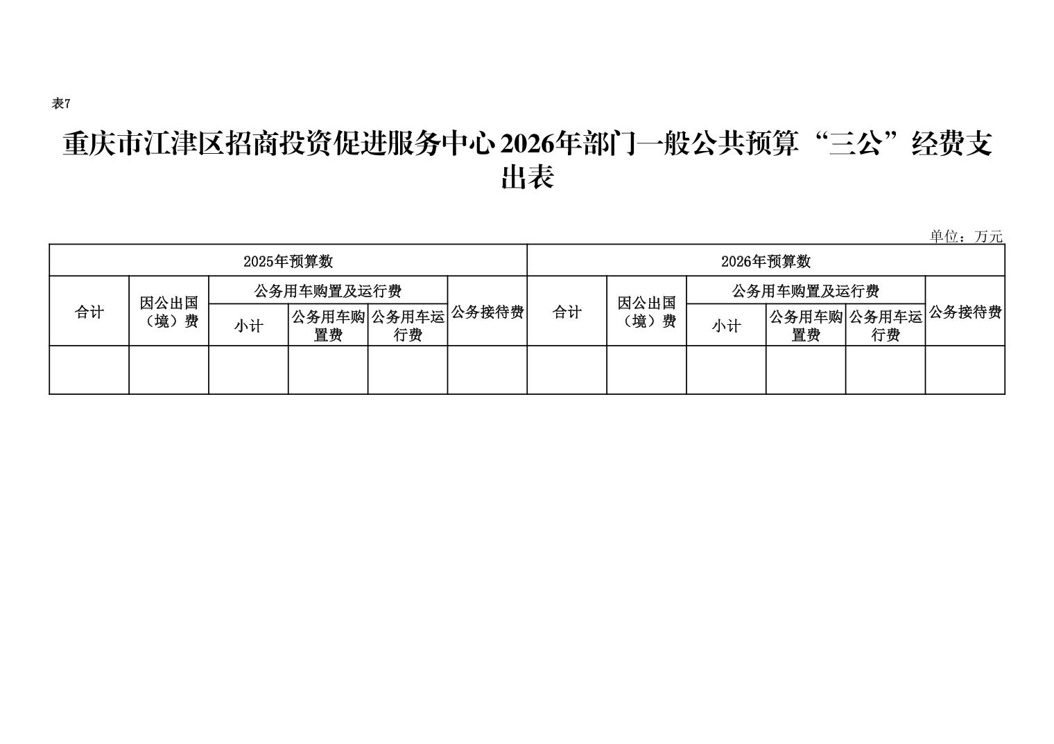 2026年一般公共預算“三公”經費年初預算0萬元。