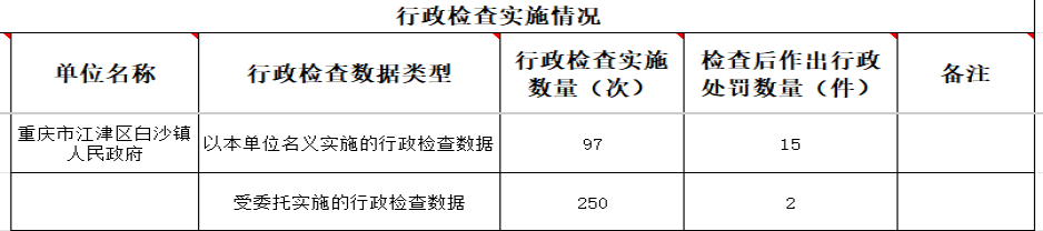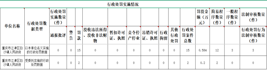 2025年度重慶市江津區(qū)白沙鎮(zhèn)行政執(zhí)法數(shù)據(jù)公示